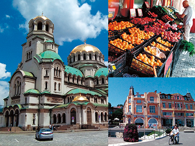 バルカン半島の東部に位置し、北はドナウ川をはさんでルーマニア、 南はギリシャとトルコ、東は黒海、西はセルビアとマケドニアに接して いる。バルカン山脈が南北を2分し、北部のドナウ平野は大陸性気候で夏は気温が高く乾燥し、冬は低温多湿。一方南側は夏は温暖で湿度が高い。首都ソフィアは標高約530mの盆地に位置し、穏やかな気候だ。